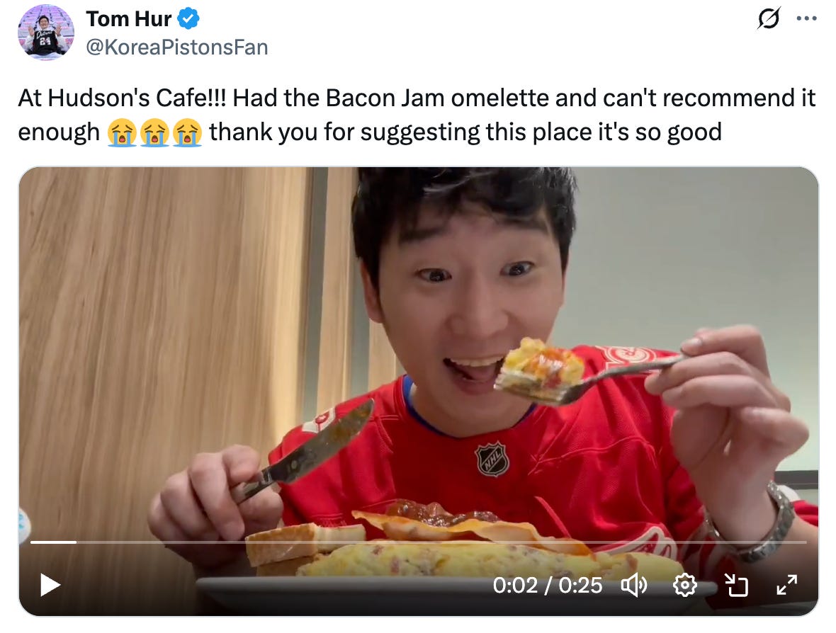 He loved the team so much that he made his first trip to America just to see them play live. In 2023, Hur and a friend traveled to Detroit.